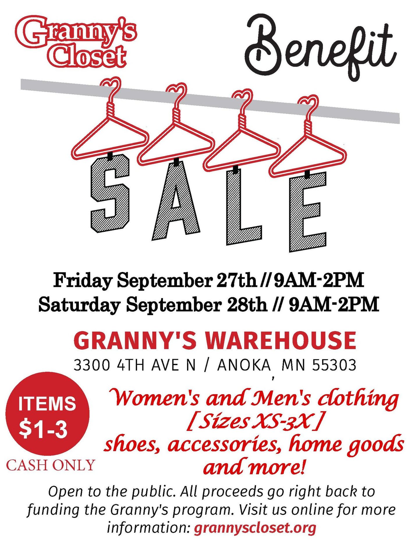 Our Fall Sale is around corner! Mark your calendars for Friday September 27 and Saturday September 28 from 9 a.m. - 2p.m, and stop by our Anoka warehouse for all gently used items $1, and new with tags marked at $3. We can't wait to see you there!