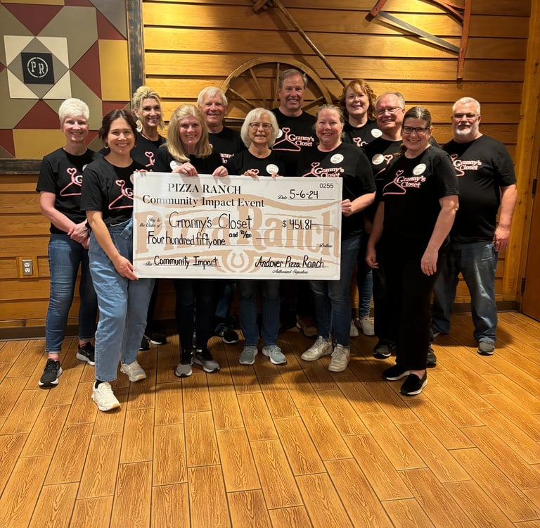 We had a blast at Pizza Ranch last Monday bussing tables, cleaning up after close, and chatting with their wonderful guests about Granny's Closet. We raised $450 to help stock our shelves!! Thank you to Pizza Ranch Andover for donating 10% of sales and tips, and our AMAZING volunteers who helped us make the event a success!!
